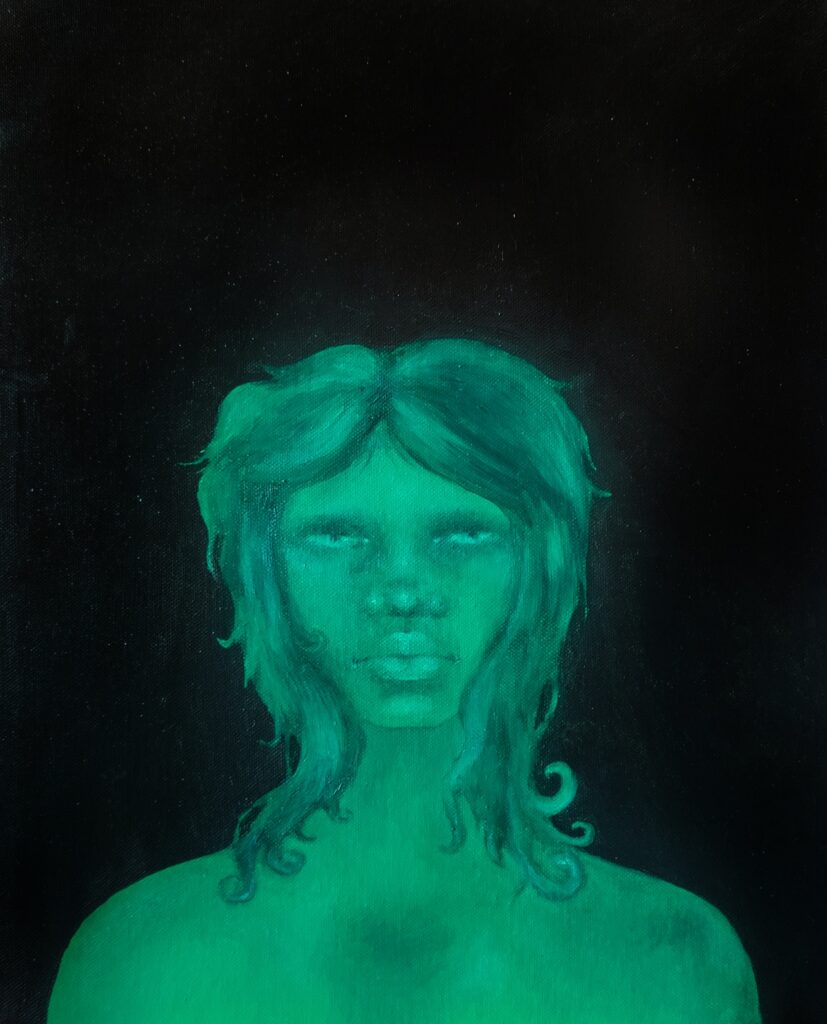 “Autoportret” – al cărui titlul nu face tocmai referire la o asemănare fizică, ci la imaginea mea interioară. Acesta reprezintă ce îmi imaginez când mă gândesc la un portret. Ilustrează renașterea, dar și ideea de natural, mai particular echilibrul. Dintr-o altă perspectivă portretul reprezintă punctul în care mă aflu din punct de vedere artistic – “eu acum” ca persoana care