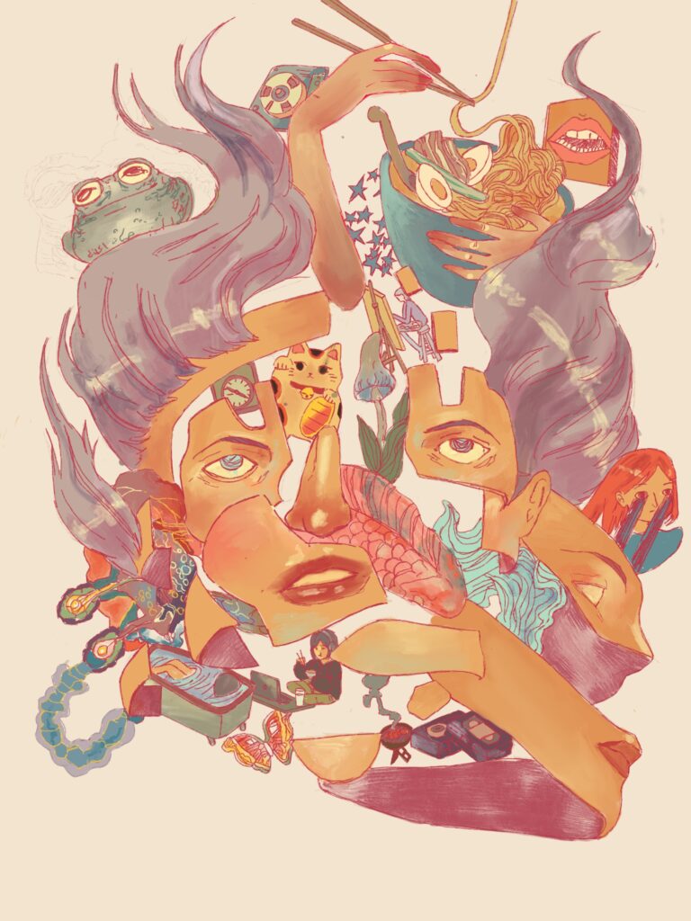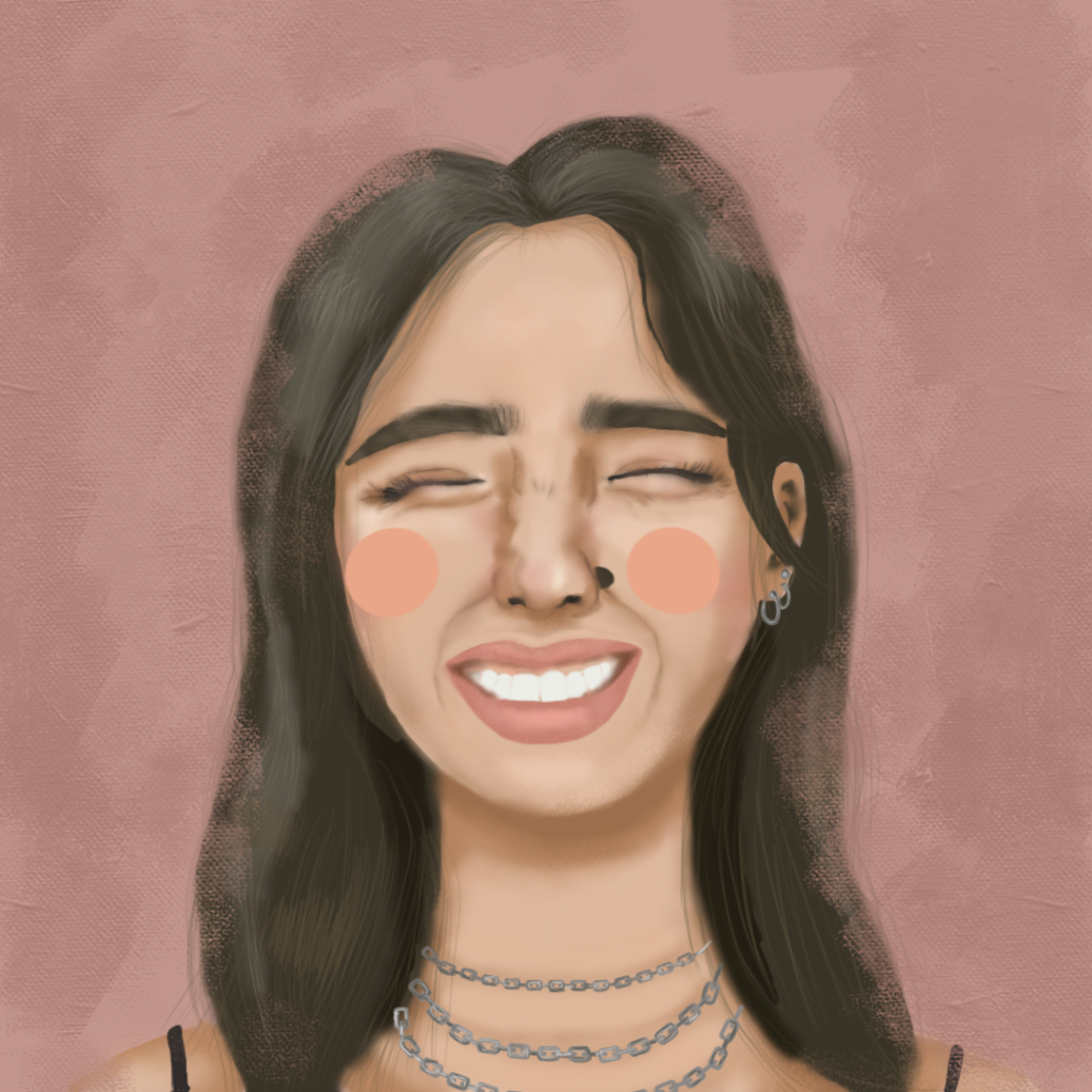 Ilustrația pe care am realizat-o mă întruchipează pe mine, realizată digital în stilul picturii analog, în ulei. Simt că mă reprezintă atât prin zâmbet, accesorii, dar simt că am pus și o parte de personalitate în procesul de creație. (Georgiana Sîrbu)